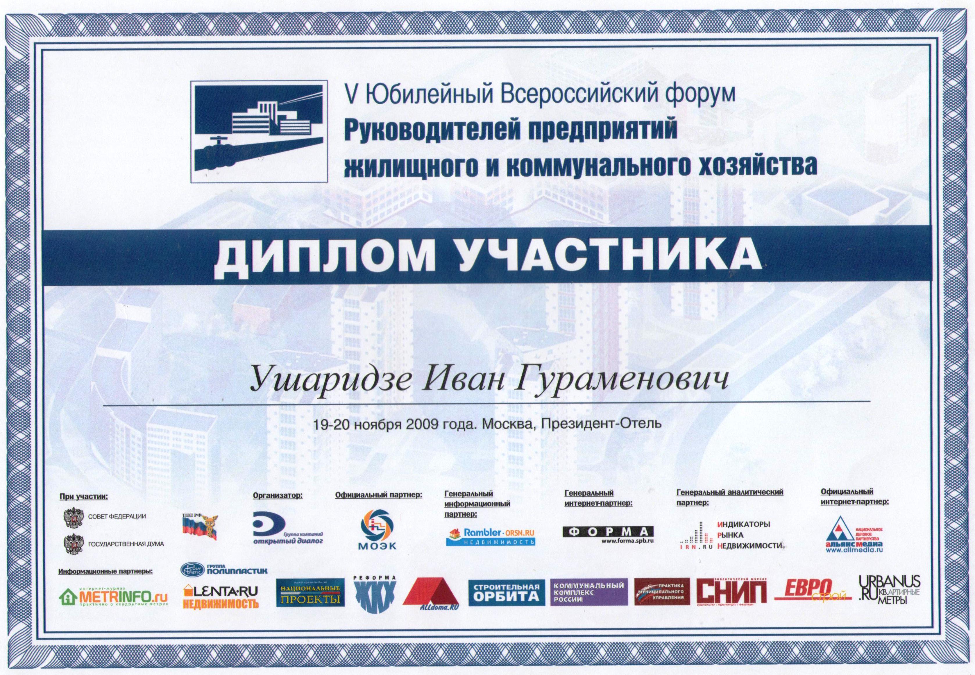 Ноябрь 2009 года – участие в пятом Юбилейном Всероссийском форуме Руководителей предприятий жилищно-коммунального хозяйства.