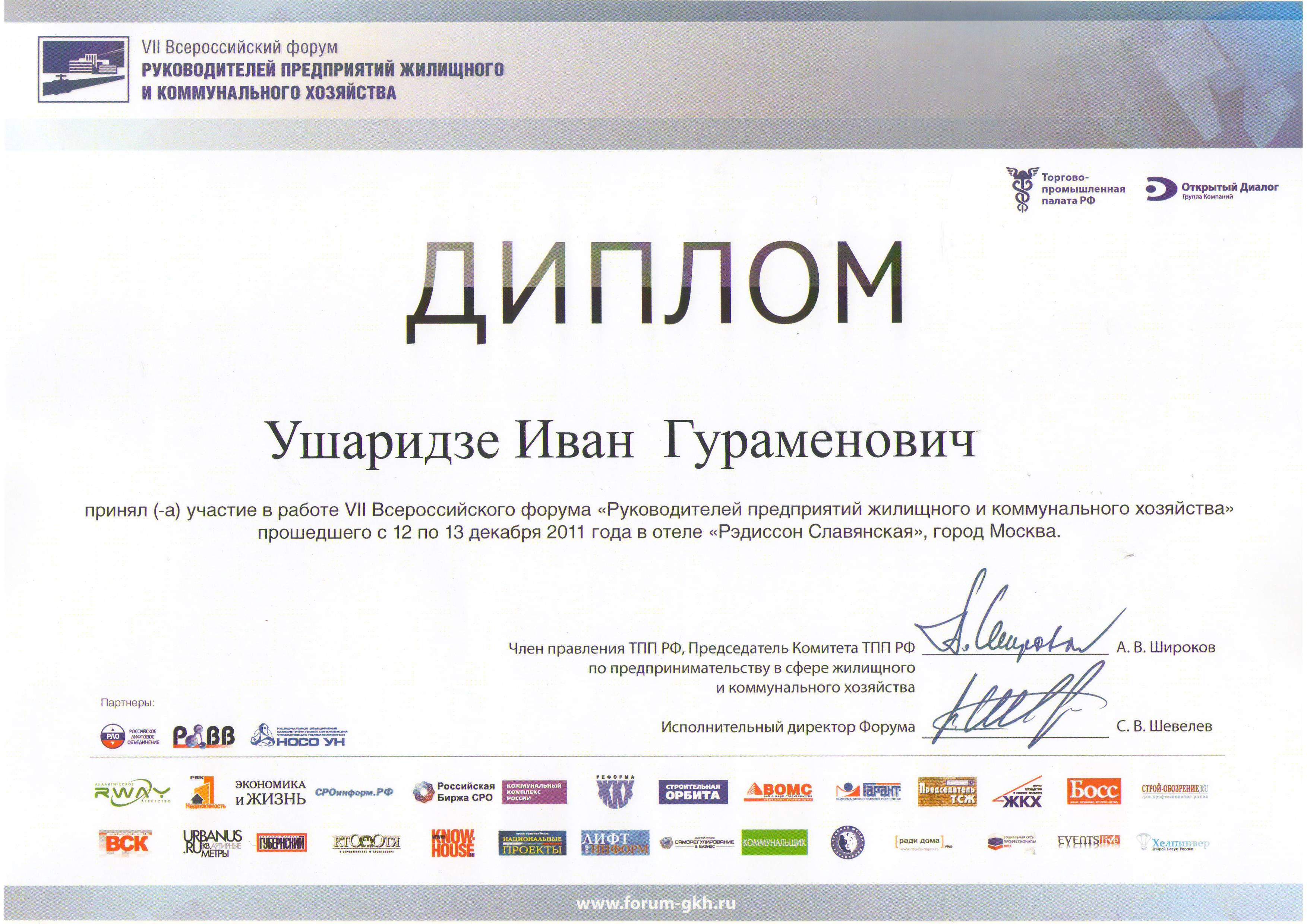 Декабрь 2011 года – участие в седьмом Всероссийском форуме "Руководителей предприятий жилищного и коммунального хозяйства".